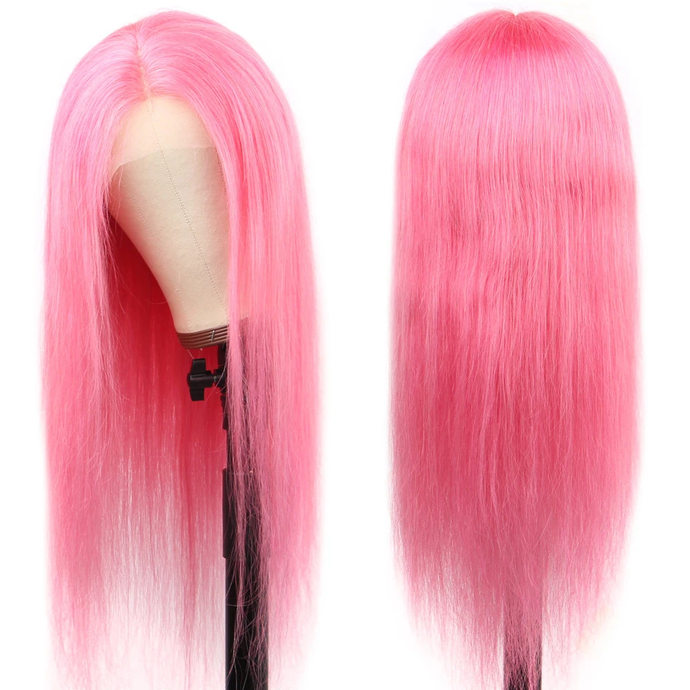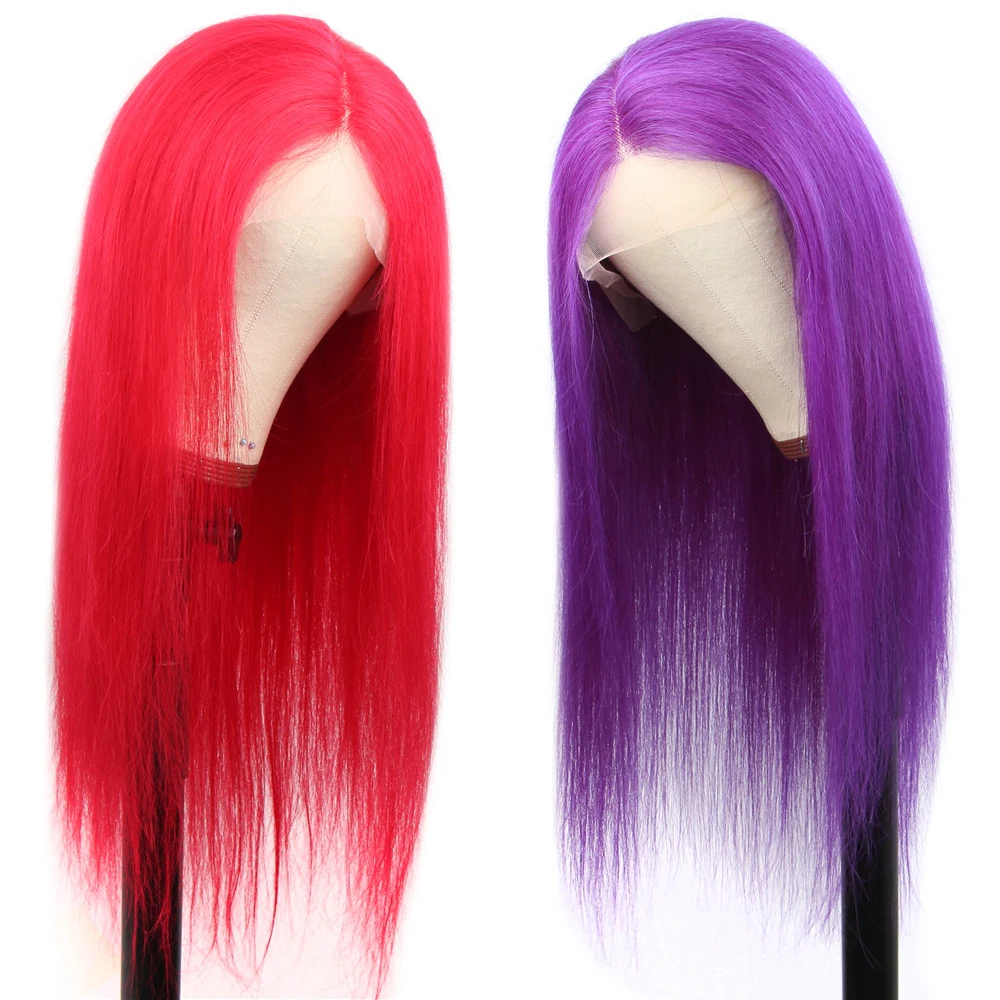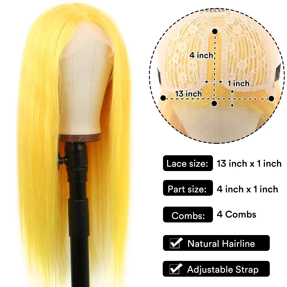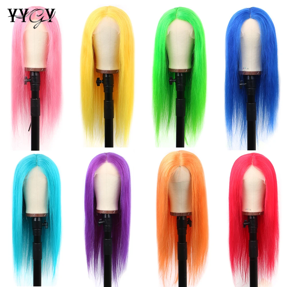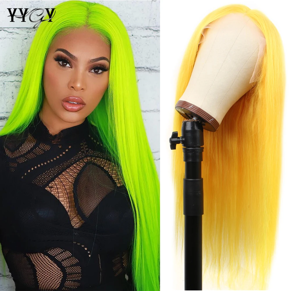 13x1 Lace Front Human Hair Wigs For Women Remy Yellow Pink Green Colored Straight HD Lace Front Wig Brazilian 613 Blonde Wig