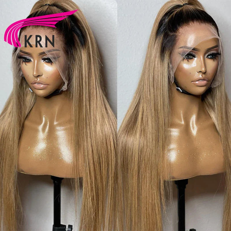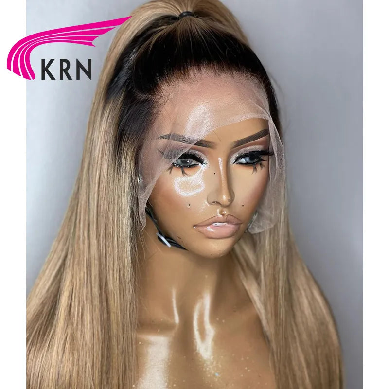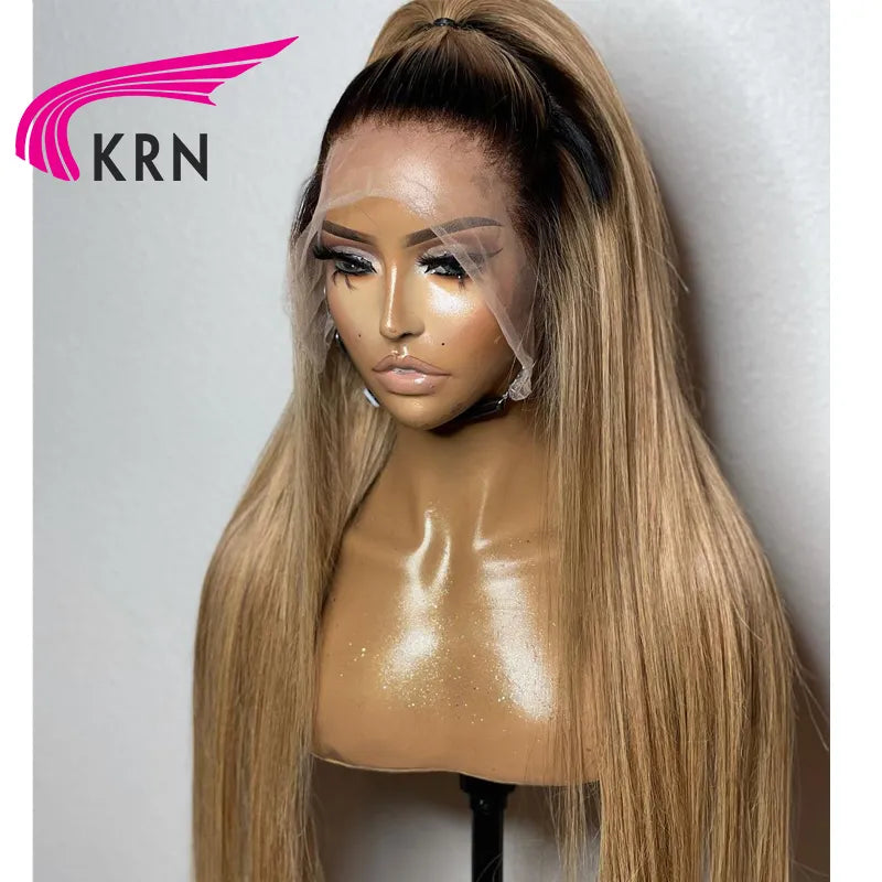 1B27 Straight Hair Lace Front Human Hair Wigs with Baby Hair Preplucked Ombre Honey Blonde Brazilian Remy Lace Front Wig