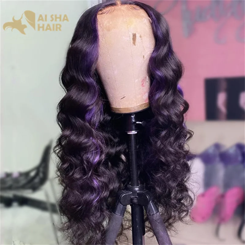 Highlight Purple with Pink Body Wave Human Hair Wigs Transparent Brazilian 13x4 Lace Frontal wig 13x6 lace Front Wig Pre Plucked
