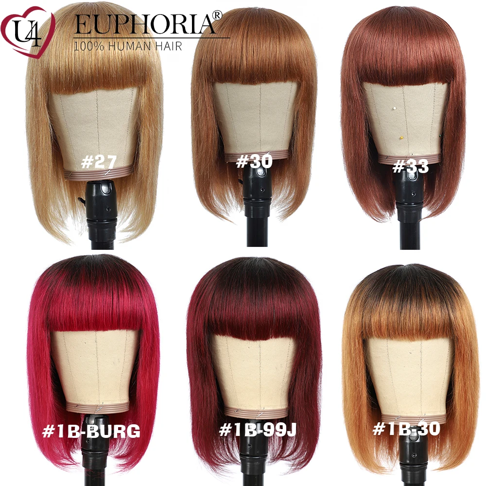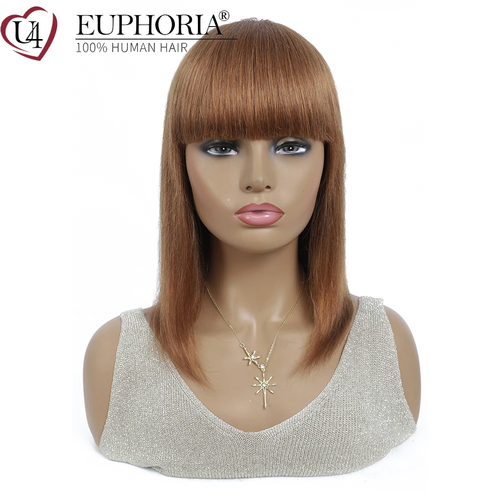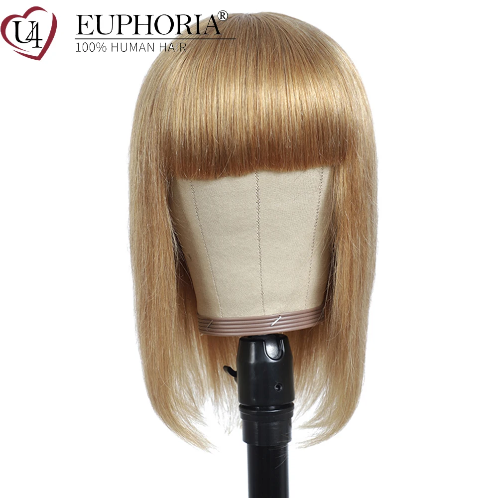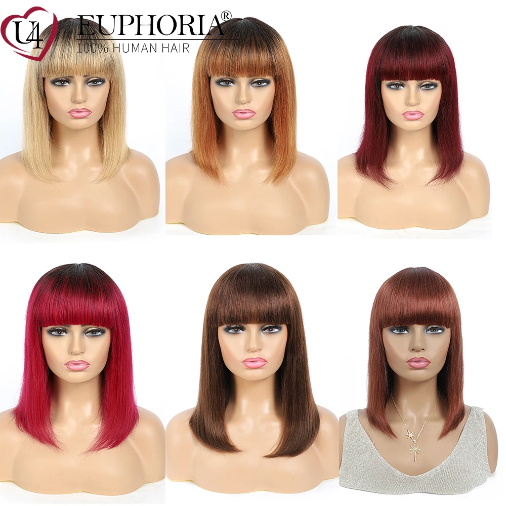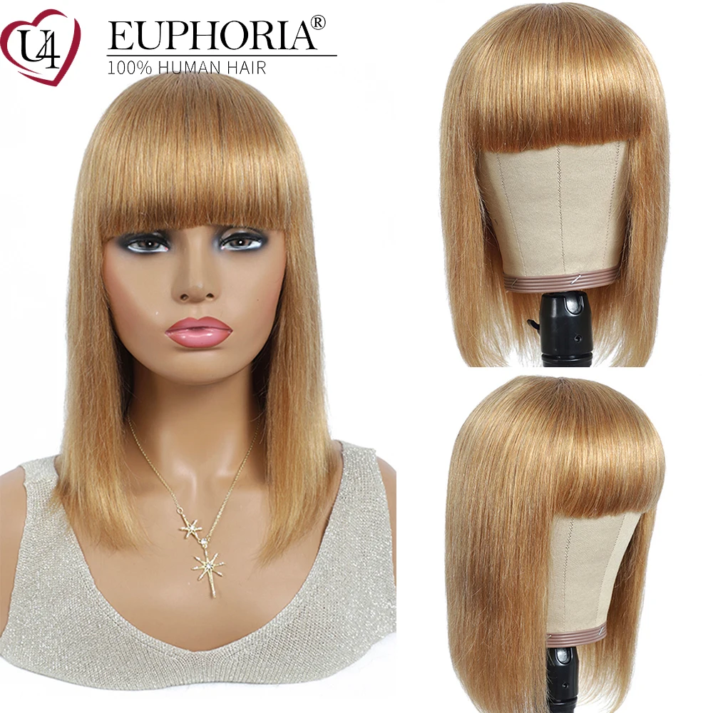Natural Color Straight Hair Wigs With Bangs Burg Blonde Brazilian 9A Remy 100% Human Hair Full Machine Bob Wigs 8-28In EUPHORIA