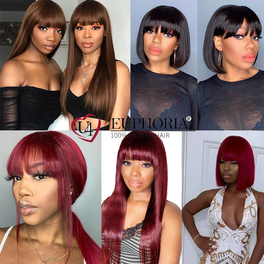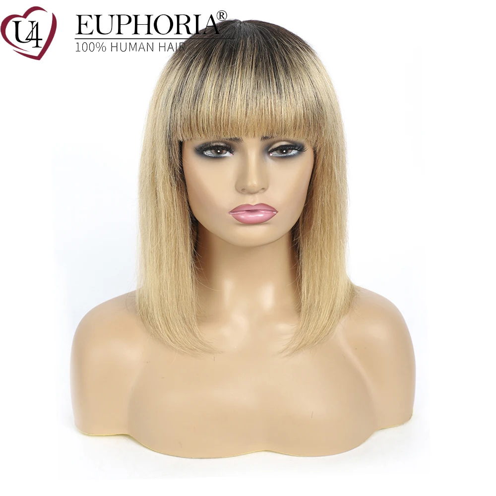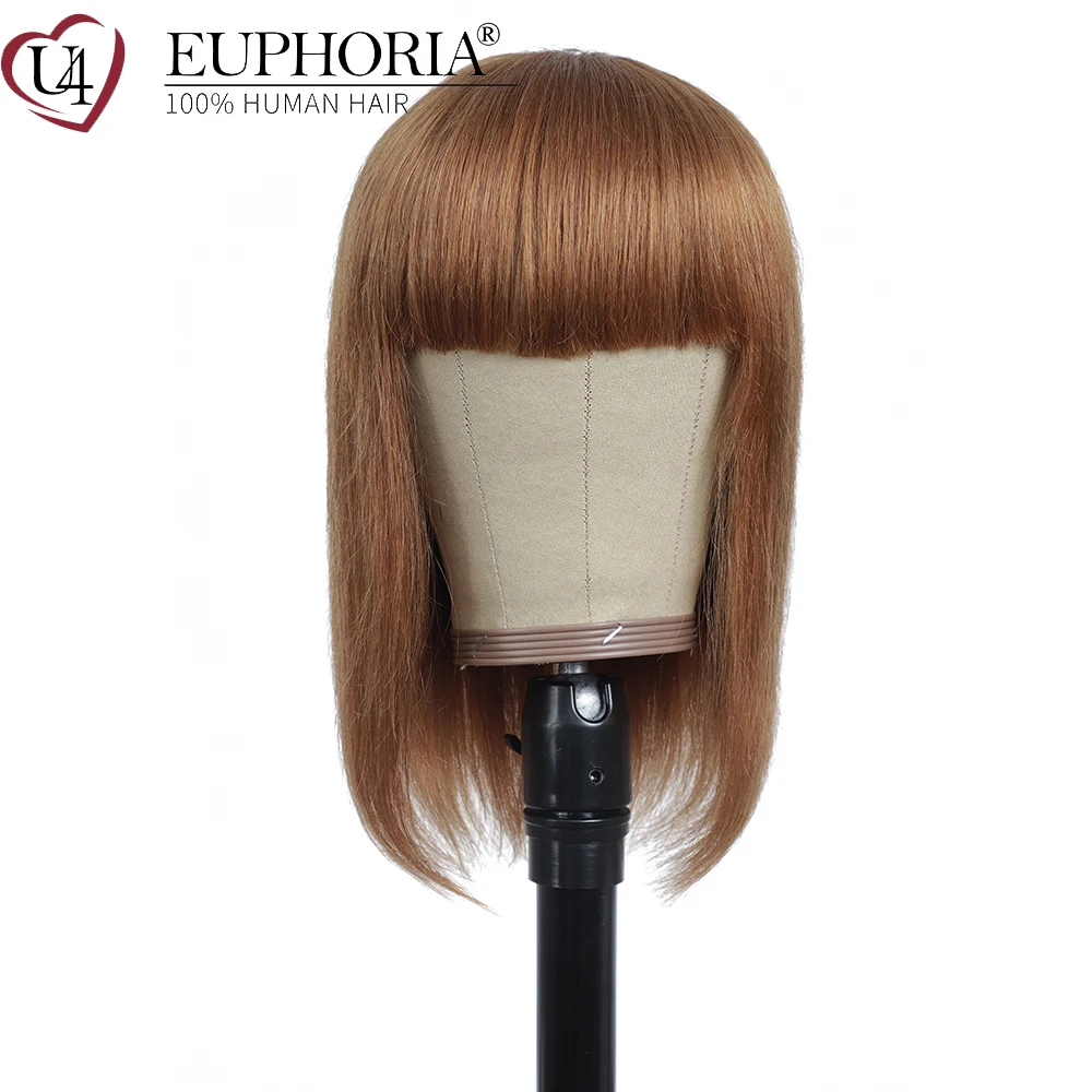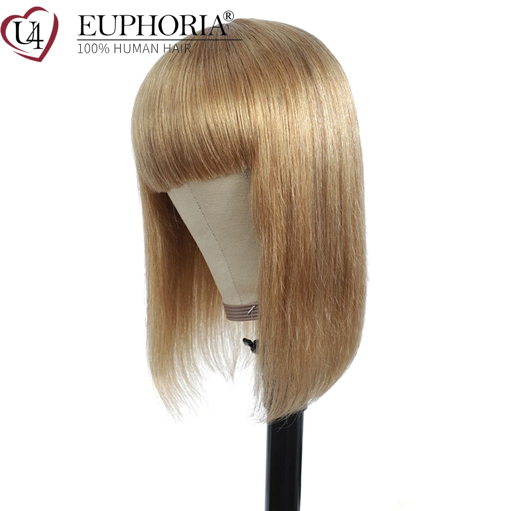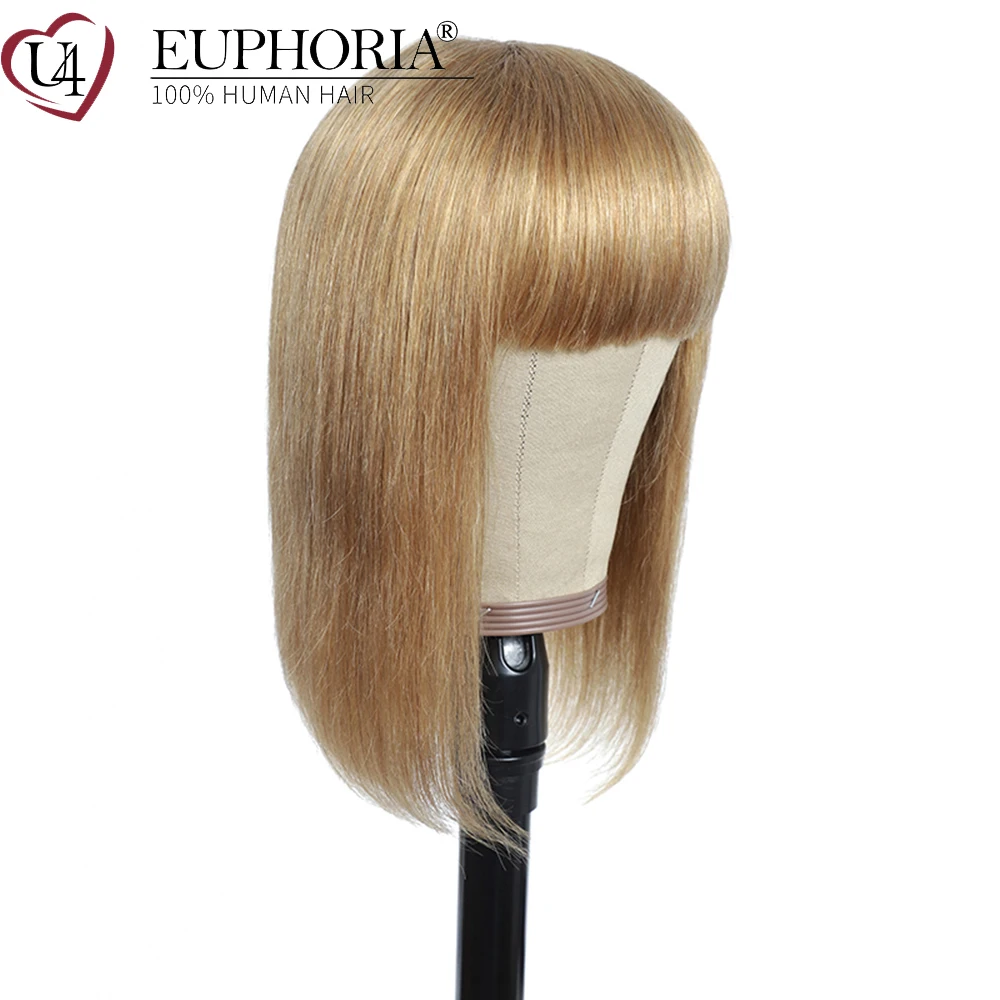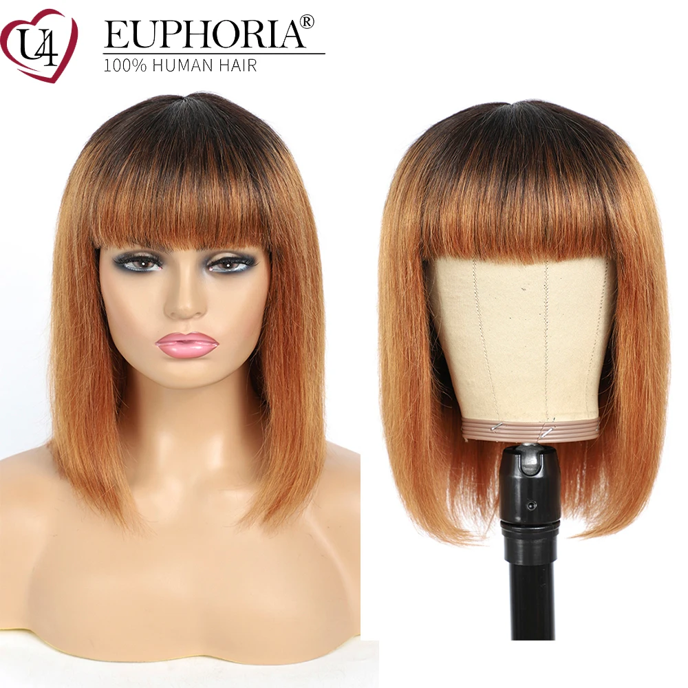 Natural Color Straight Hair Wigs With Bangs Burg Blonde Brazilian 9A Remy 100% Human Hair Full Machine Bob Wigs 8-28In EUPHORIA