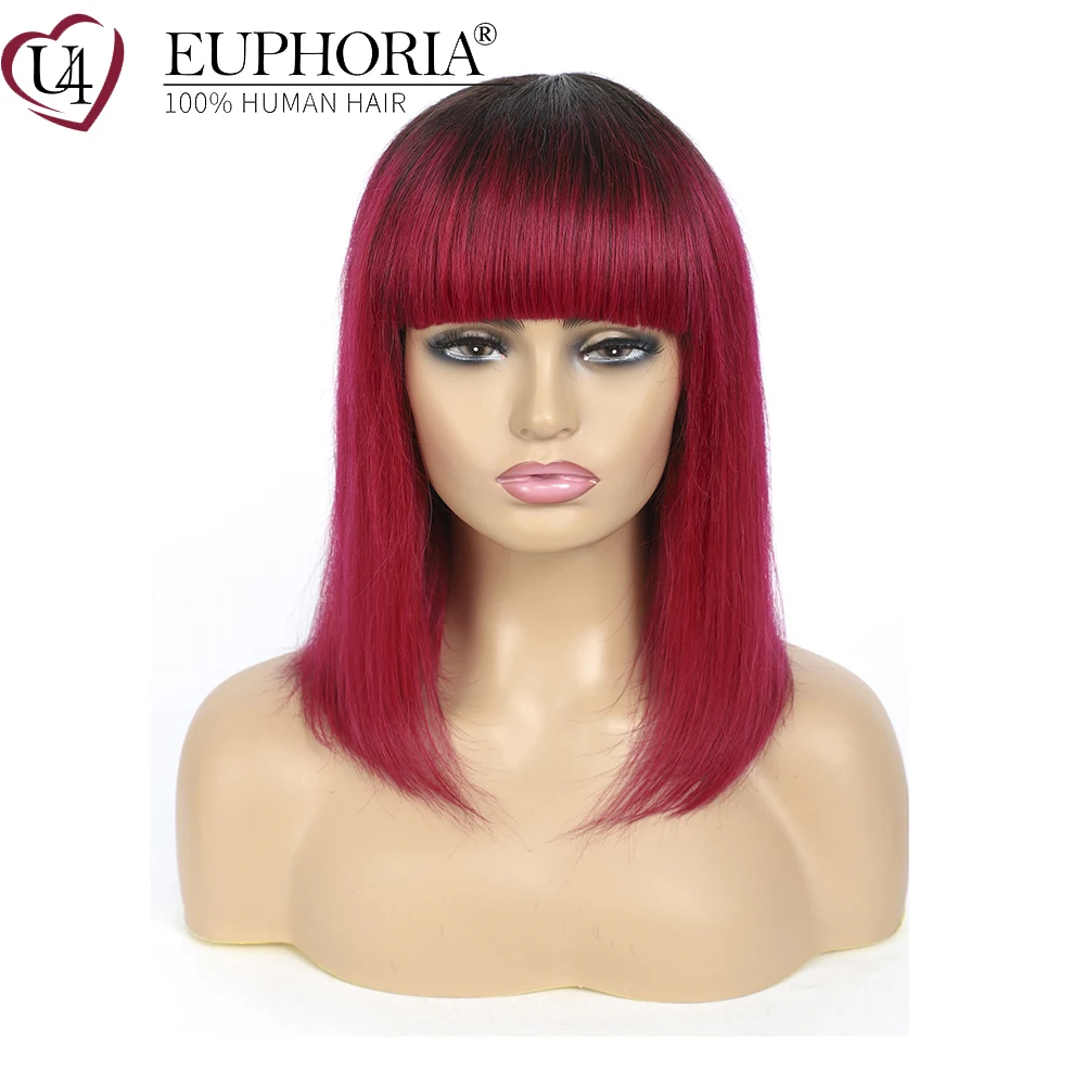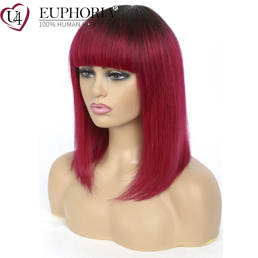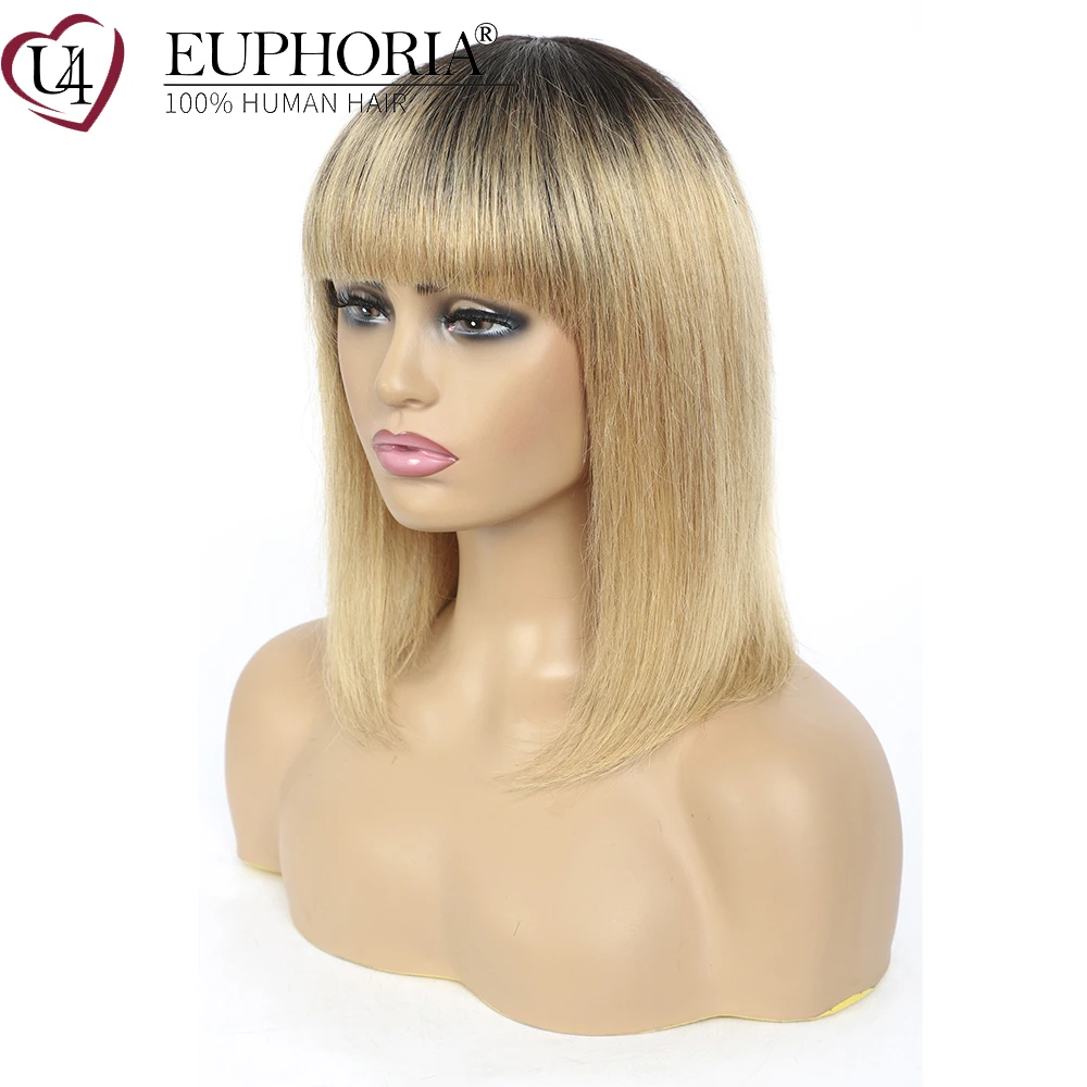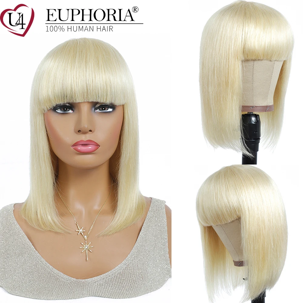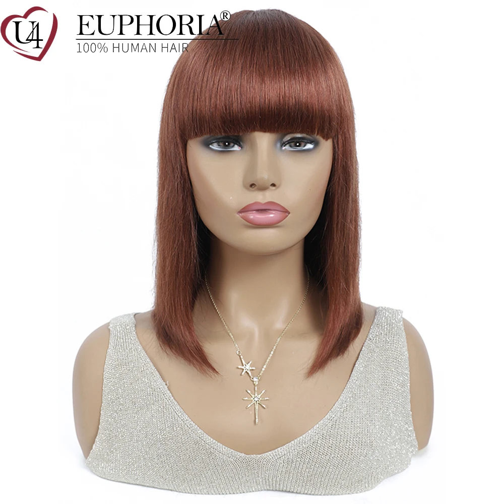 Natural Color Straight Hair Wigs With Bangs Burg Blonde Brazilian 9A Remy 100% Human Hair Full Machine Bob Wigs 8-28In EUPHORIA