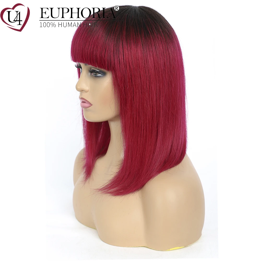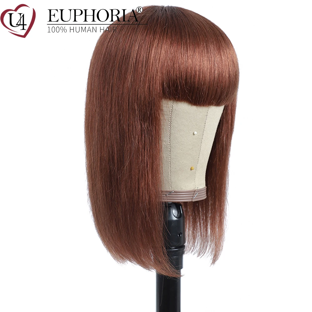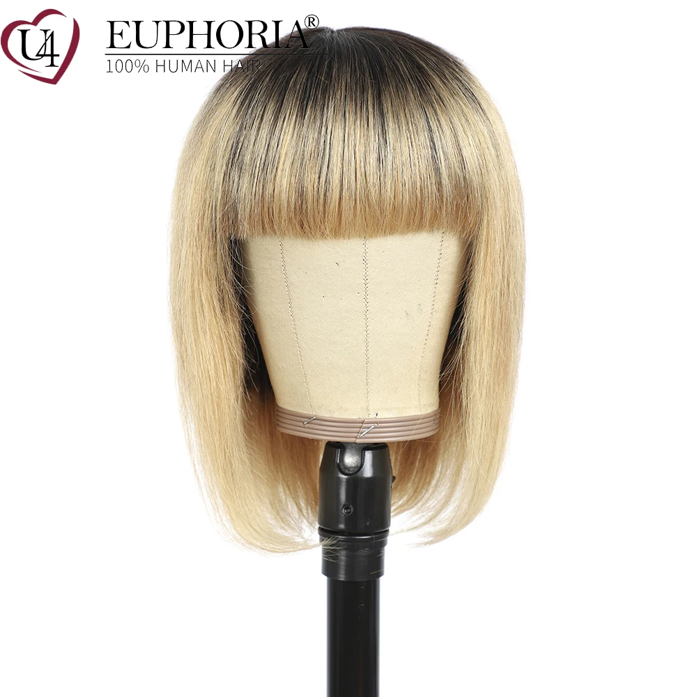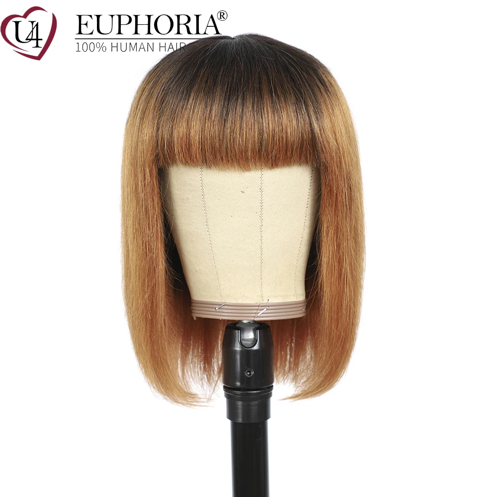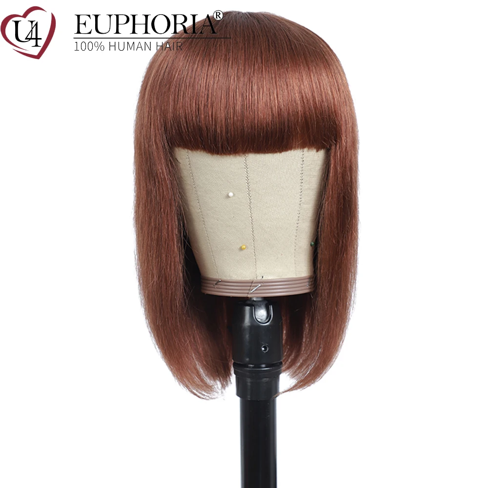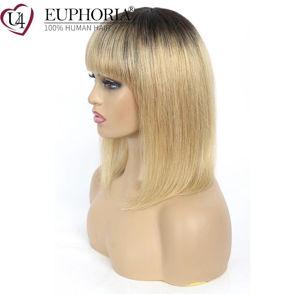 Natural Color Straight Hair Wigs With Bangs Burg Blonde Brazilian 9A Remy 100% Human Hair Full Machine Bob Wigs 8-28In EUPHORIA
