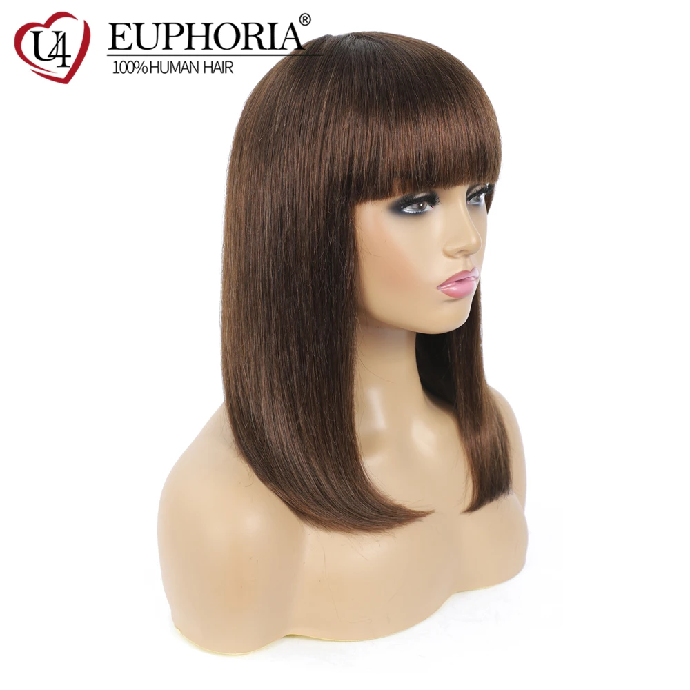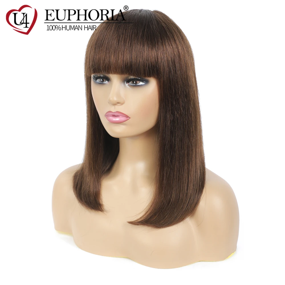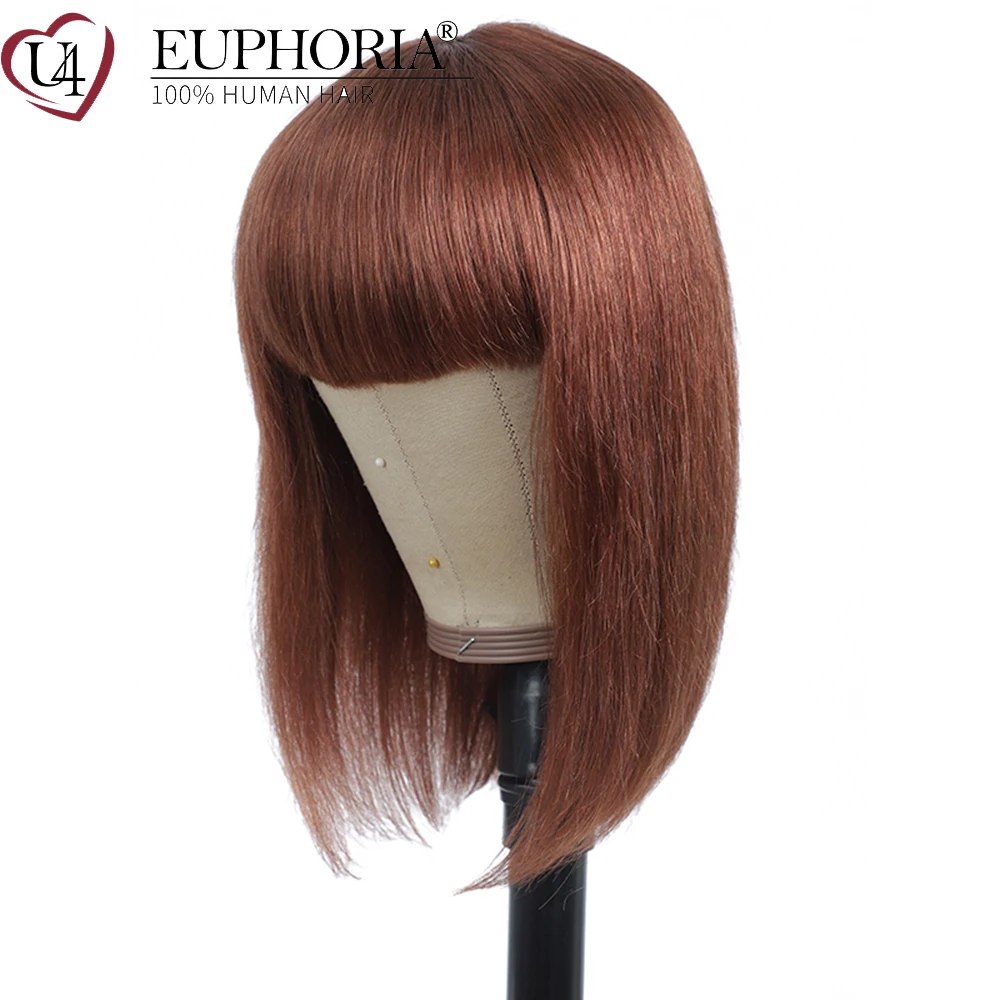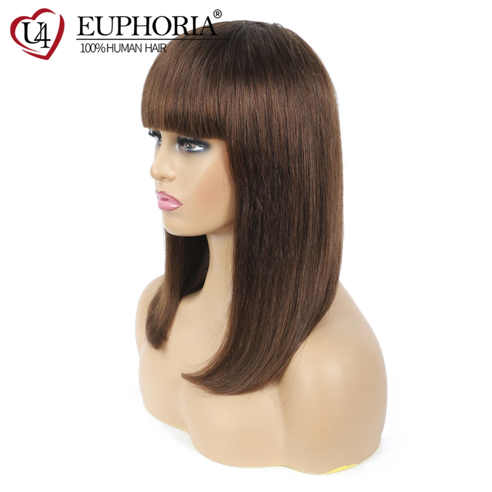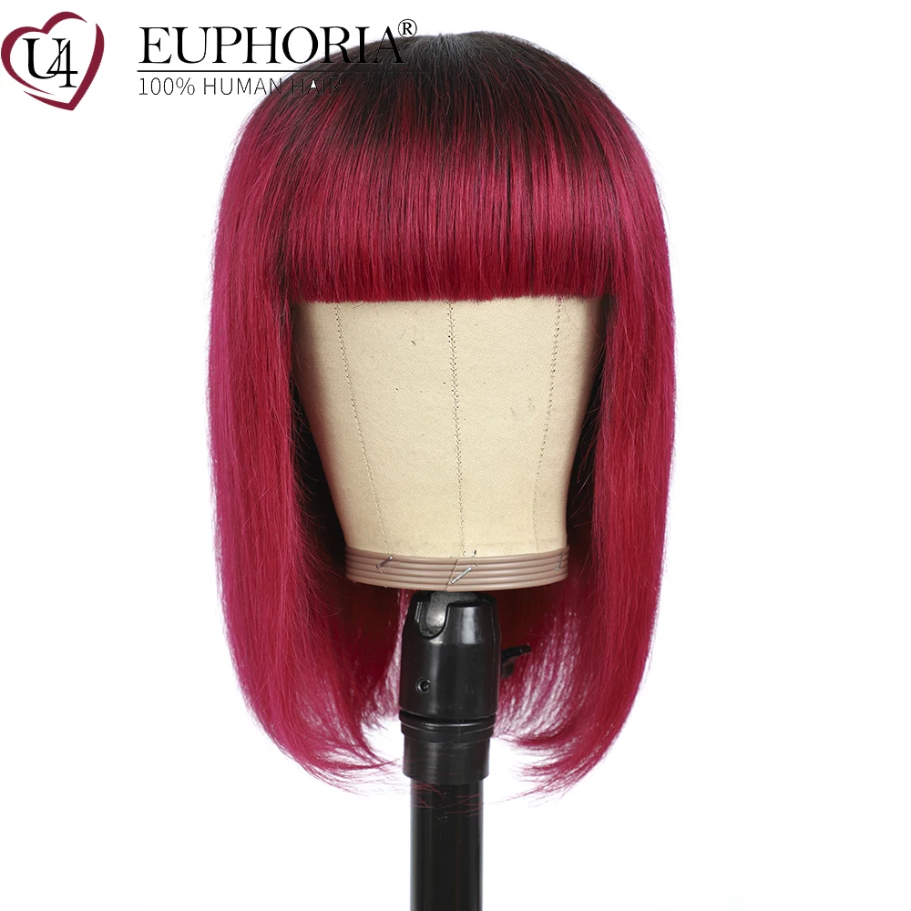 Natural Color Straight Hair Wigs With Bangs Burg Blonde Brazilian 9A Remy 100% Human Hair Full Machine Bob Wigs 8-28In EUPHORIA