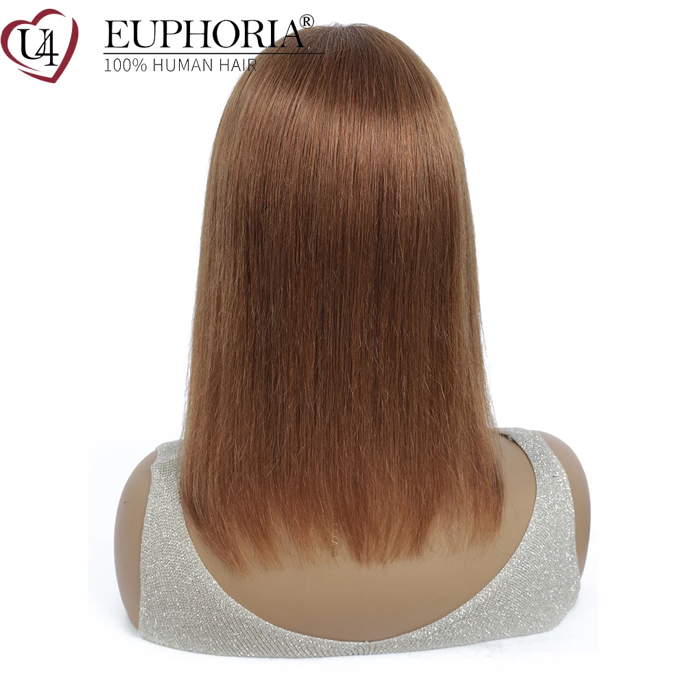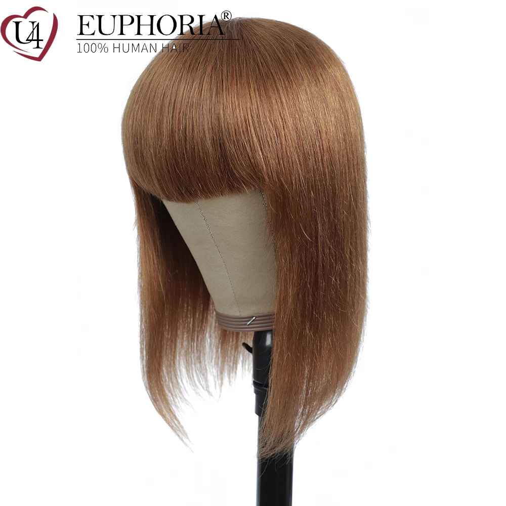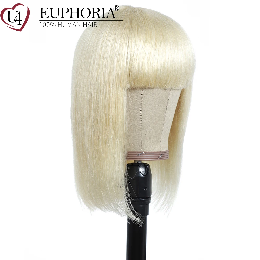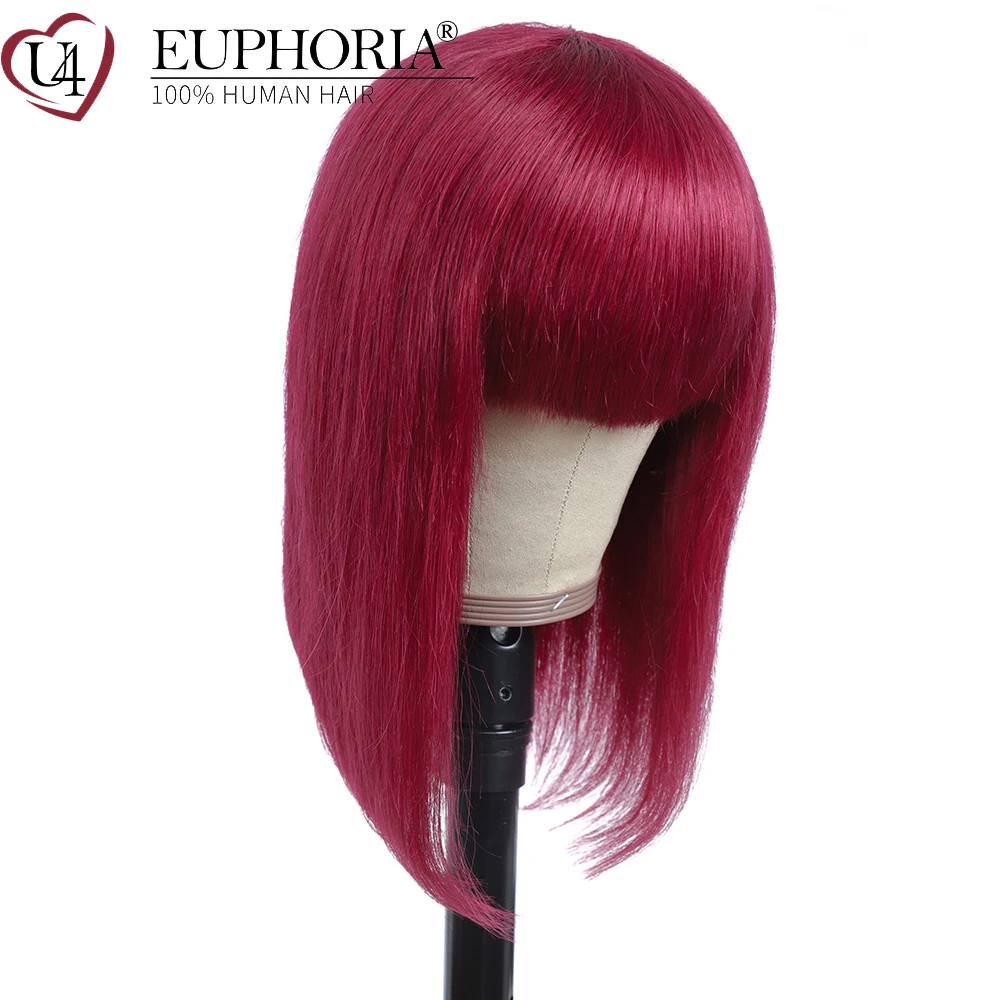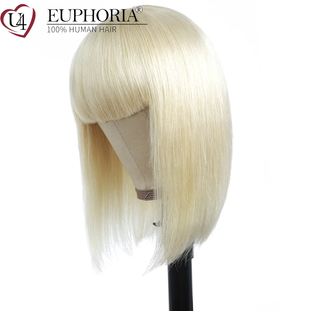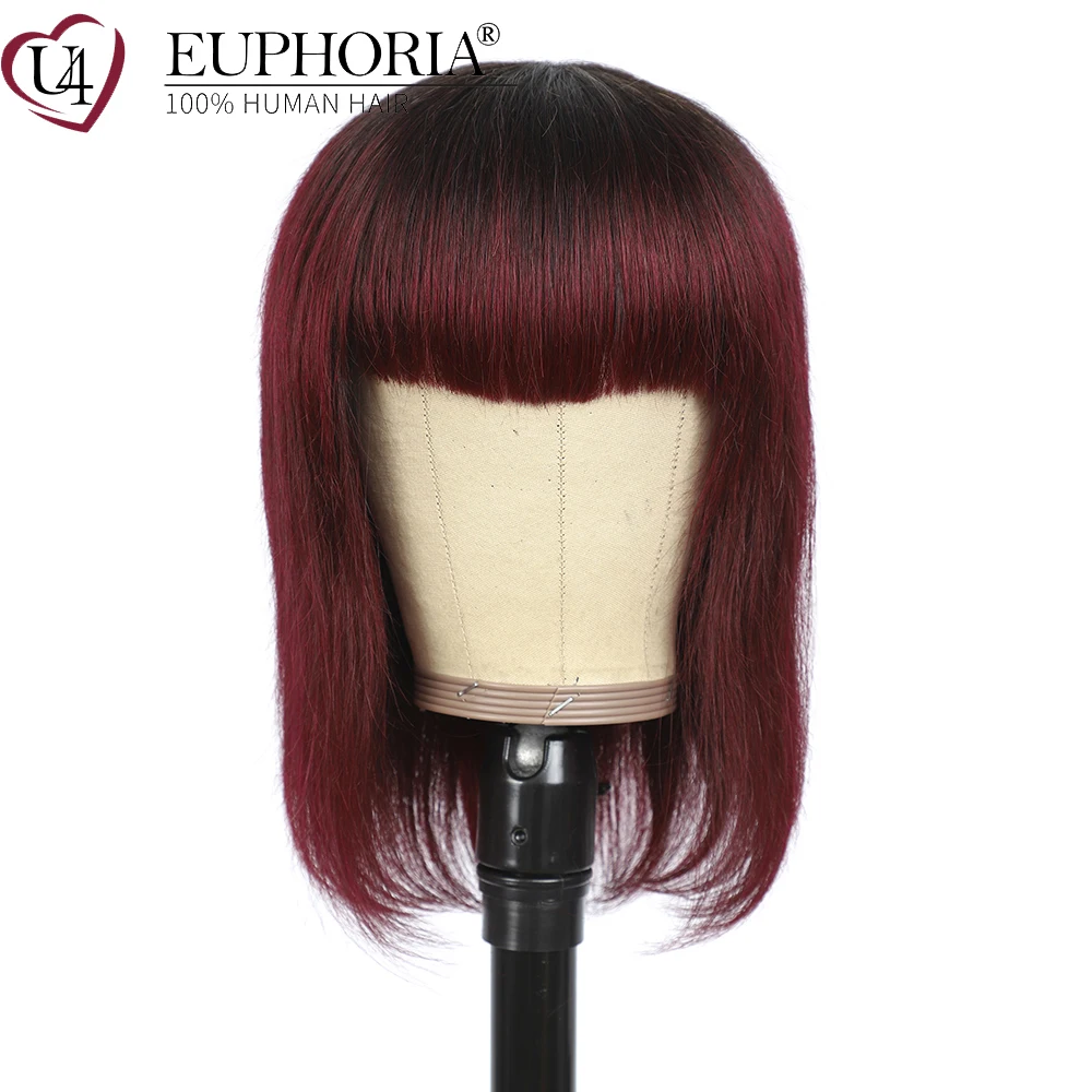 Natural Color Straight Hair Wigs With Bangs Burg Blonde Brazilian 9A Remy 100% Human Hair Full Machine Bob Wigs 8-28In EUPHORIA