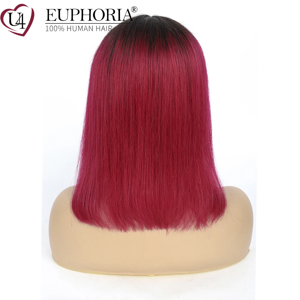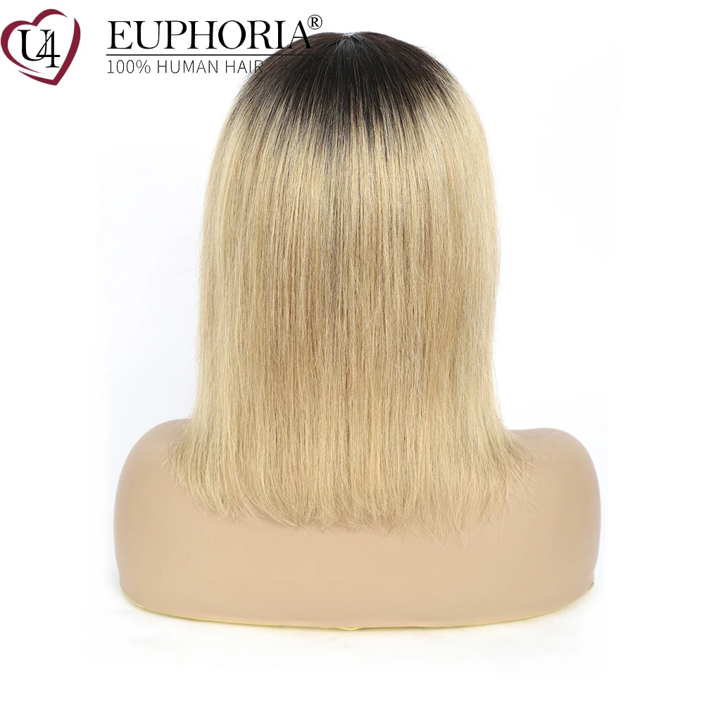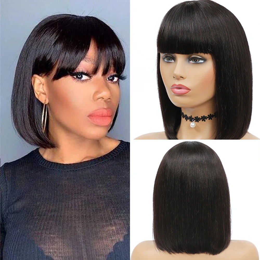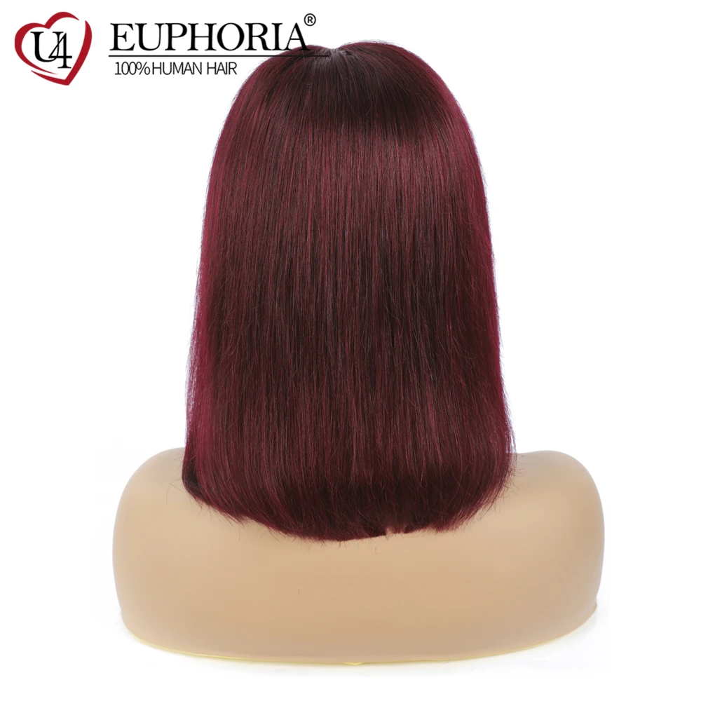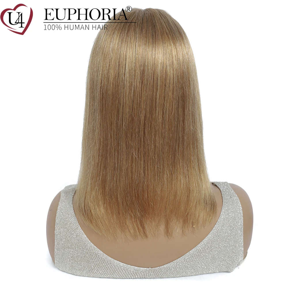 Natural Color Straight Hair Wigs With Bangs Burg Blonde Brazilian 9A Remy 100% Human Hair Full Machine Bob Wigs 8-28In EUPHORIA