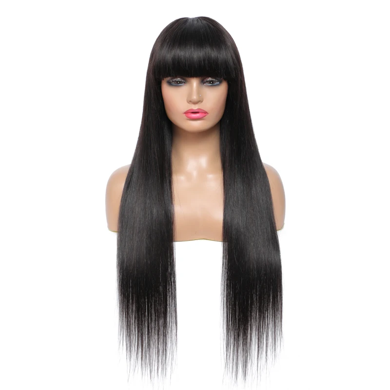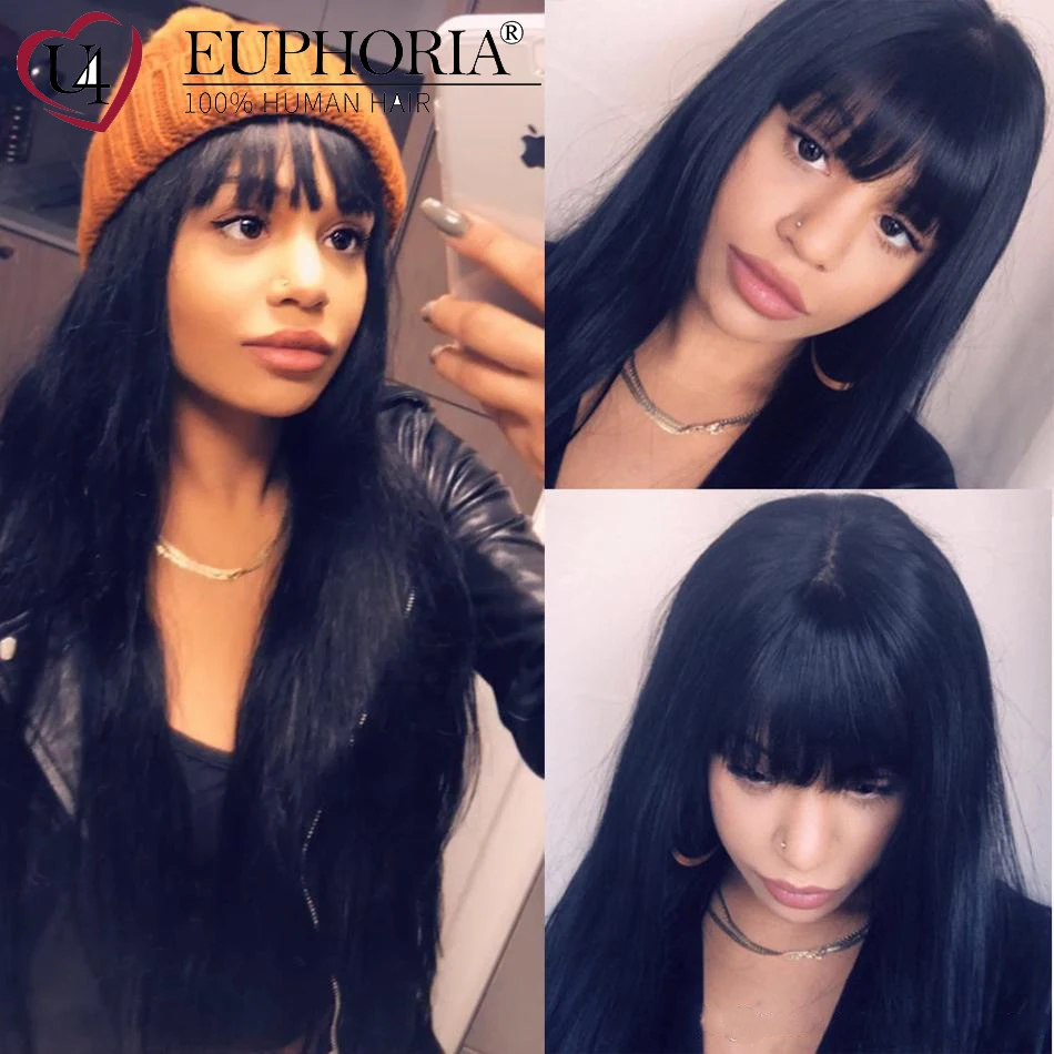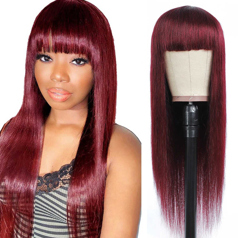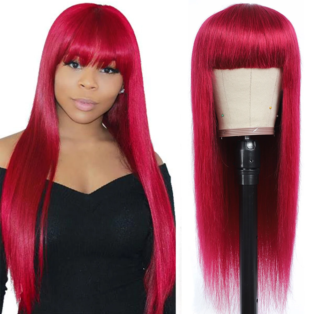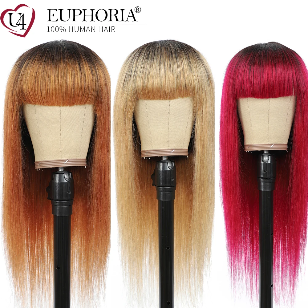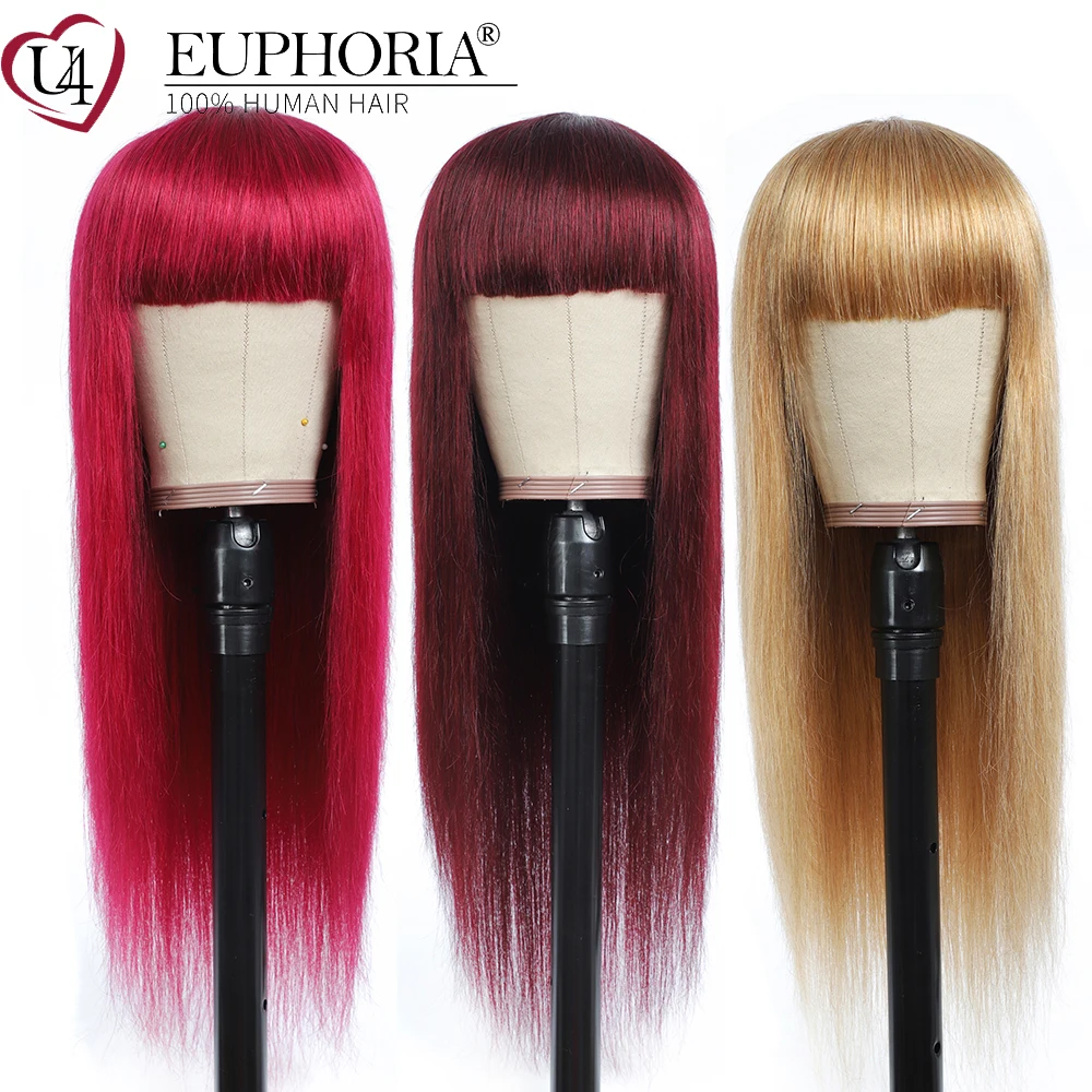 Long Straight Hair Wigs With Bangs Burg Blonde Natural Color Brazilian 9A Remy Human Hair Full Machine Wigs 8-28In EUPHORIA