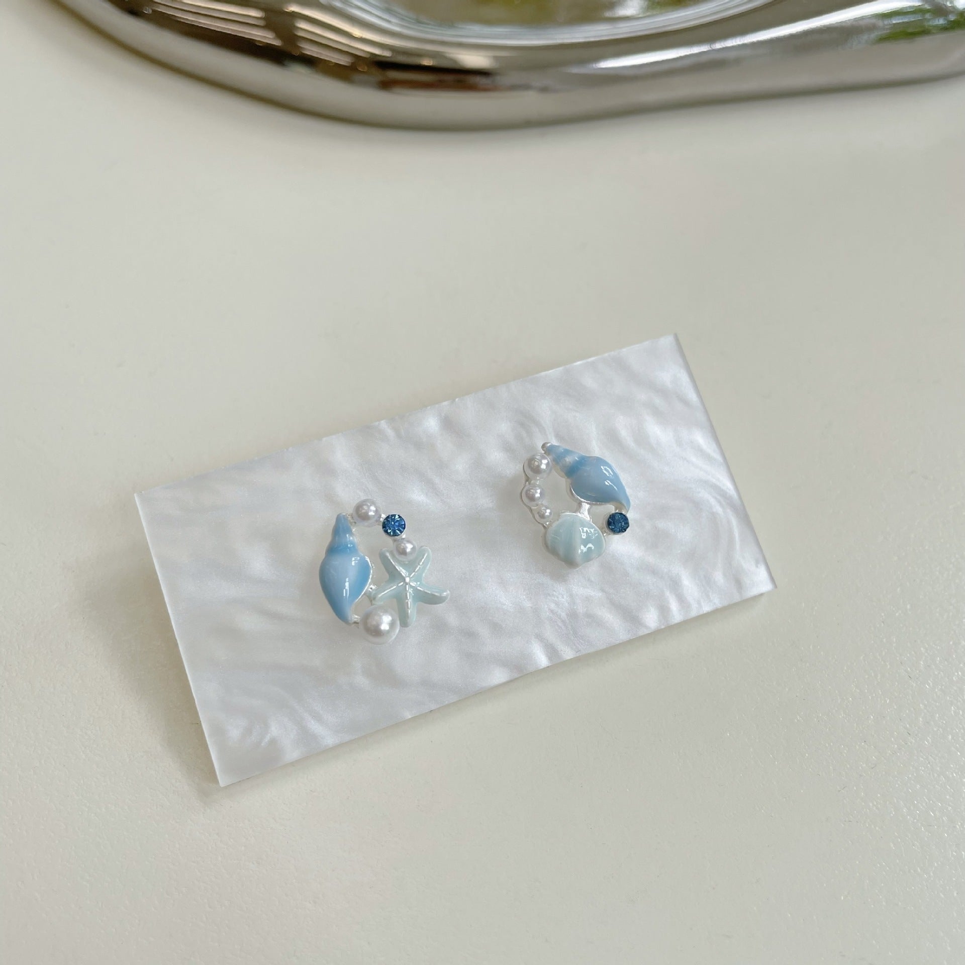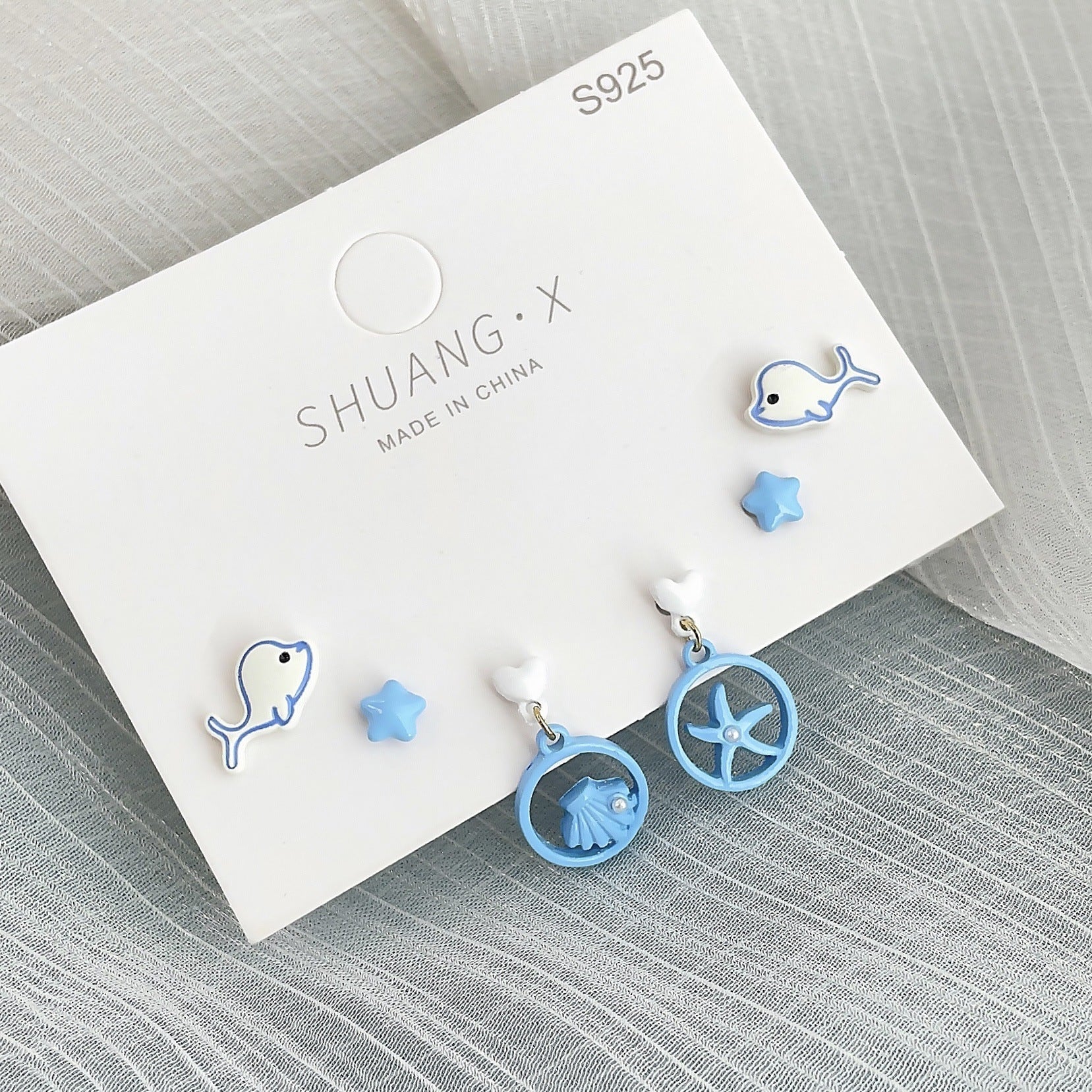 Color: XK Starry Sky pentagram, XH ocean XINGX pendant, MN09 blue Little Star, HOY1 ocean shell stud earrings, HOY2 blue starfish earrings, HJ ocean whale stud earrings, 3B-03 Blue, MIK03 mocha sky blue, TC0011-18 sterling silver needle [frosted starfish]]