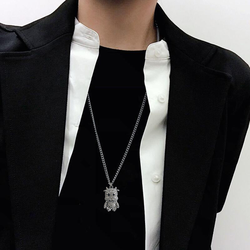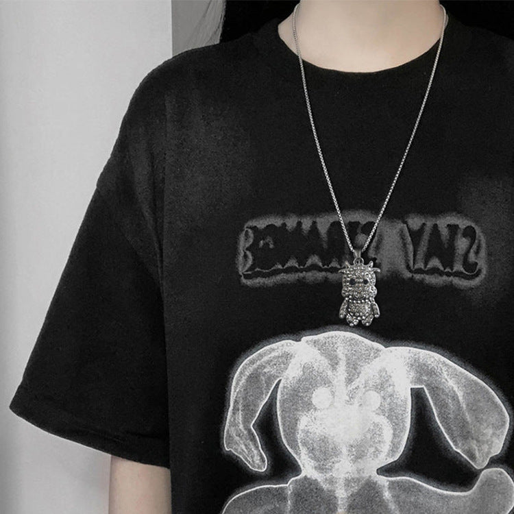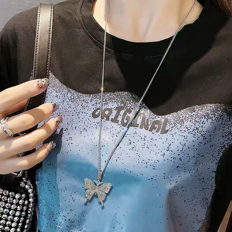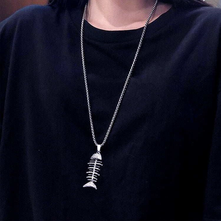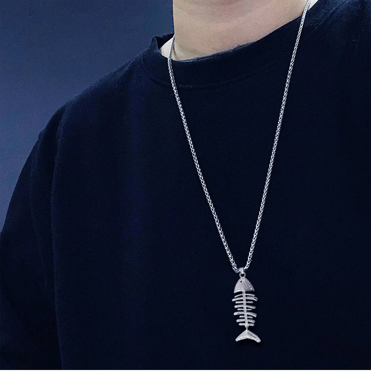 Silver Fishbone Necklace Set With Diamond All Match Student Net Red Accessories
