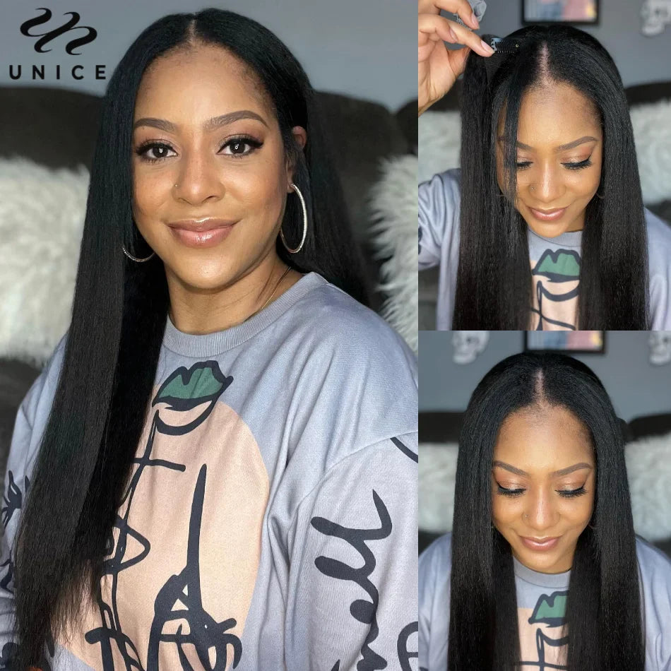 UNice Hair V Part Wig I-Part Wig Human Hair Kinky Straight Wig Glueless U Part Wig Human Hair Wigs Blend with Your Own Hairline