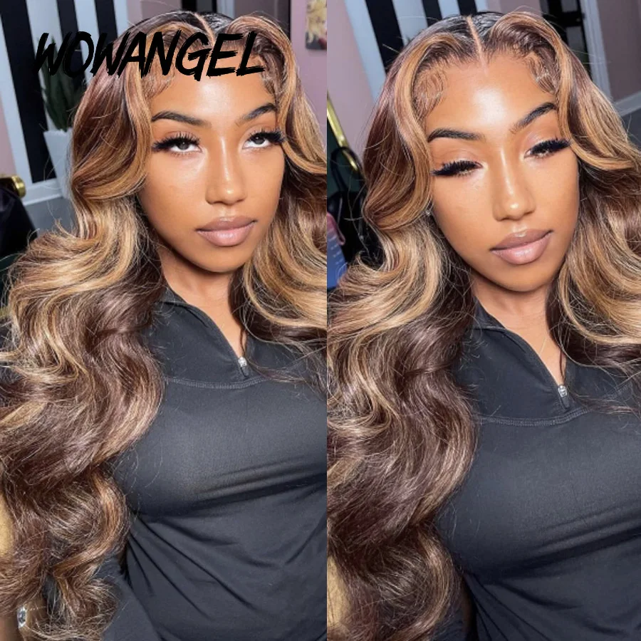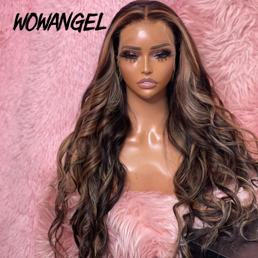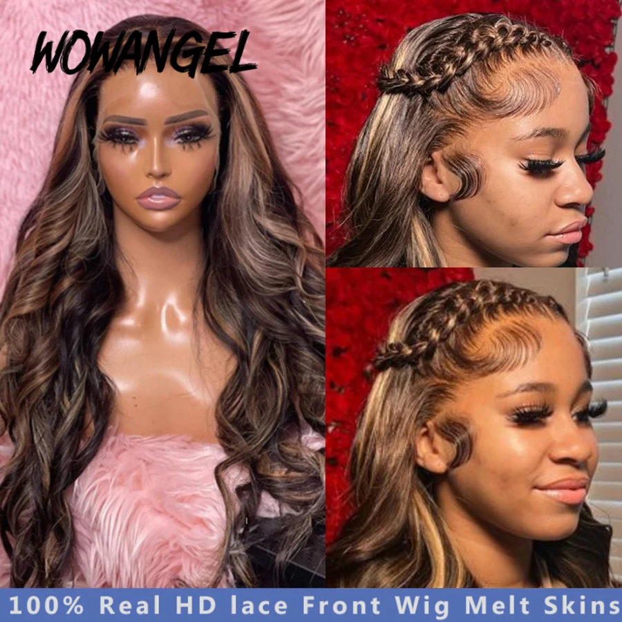 Wow Angel 250% 13x4 HD Lace Frontal Wigs Body Wave Highlight Wig Pre Plucked Melt Skin Full Lace Frontal Wig HD Lace Closure Wig