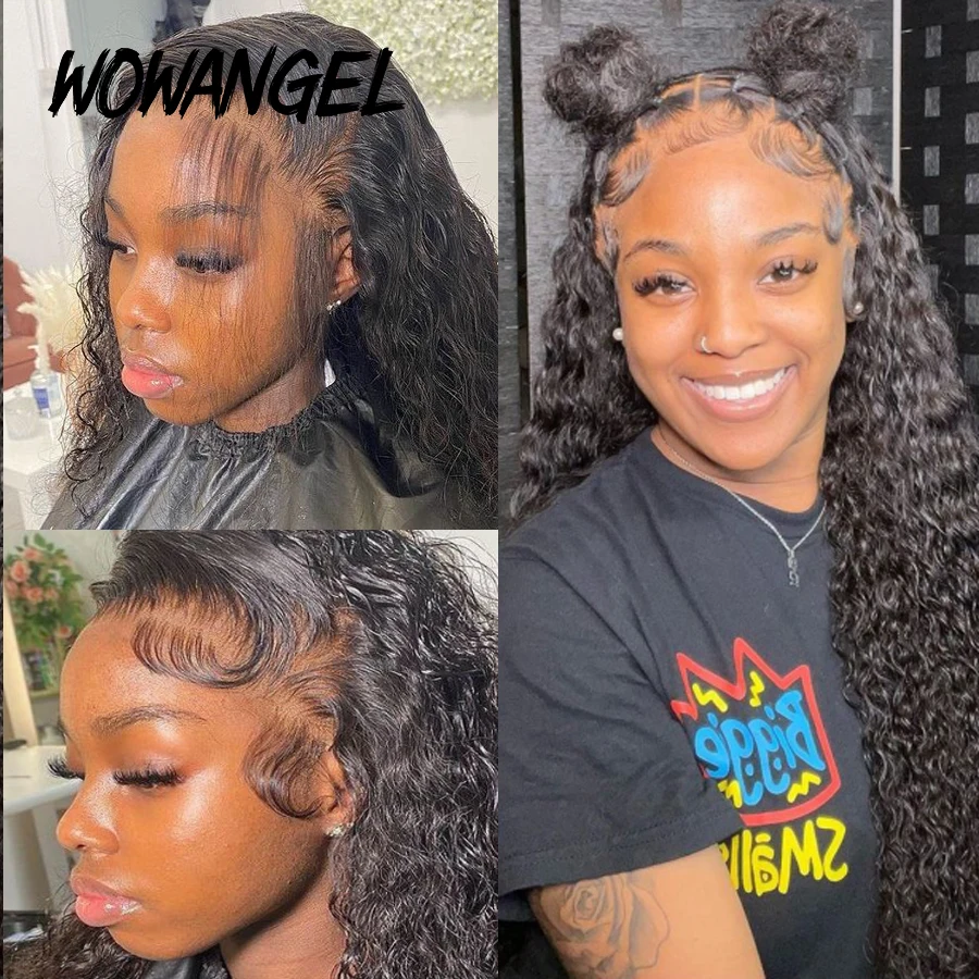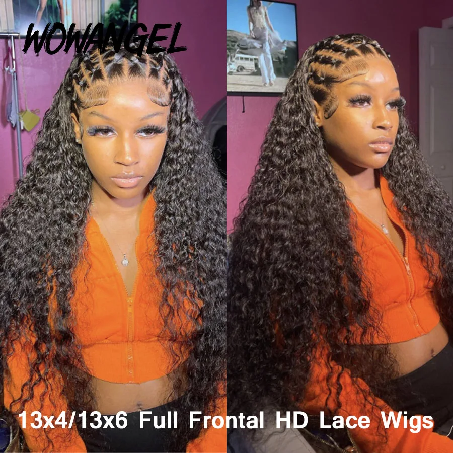 Wowangel 13x6 HD Lace Frontal Wig 250% Curly Hair Pre Plucked Water Wave Wig Full Lace Front Human Hair Wig Melt Skin For Woman