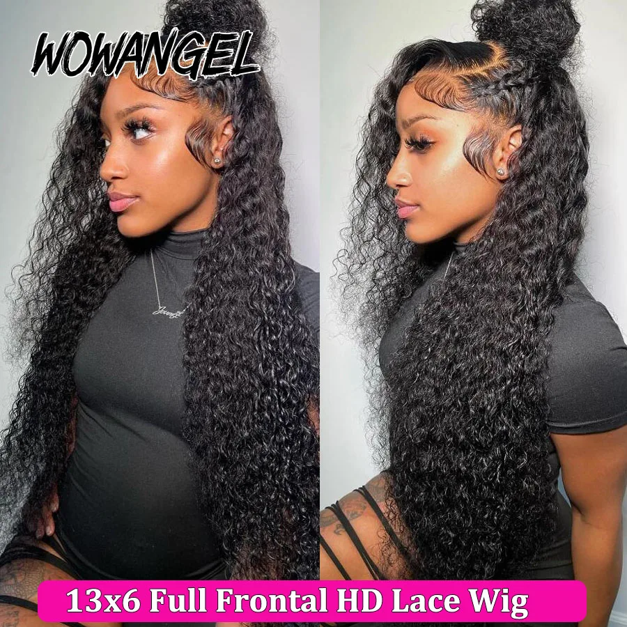 Wowangel 34inch 13x6 HD Lace Frontal Wig 250% Curly Wig Pre Plucked Water Wave Wig Lace Front Human Hair Wig Melt Skin For Woman